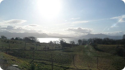 another down Sleat, a peninsula on Skye on which one finds Armadale. Reality is another funny thing. Arriving into Kyle of Lochalsh, a town about the size of my thumb, finding the bus stop was as easy as walking down the only street in Kyle of Lochalsh. Finding the bus was another matter entirely. According to the schedule plastered inside the bus shelter, we had arrived within the only hour that no buses come or go within the village. And then it started pouring. Not any kind of rain with which mere mortals may be experienced, but coastal Scotland rain. We found a chippie, warmed ourselves in our new found fried delicacies, and waiting, and waited.
